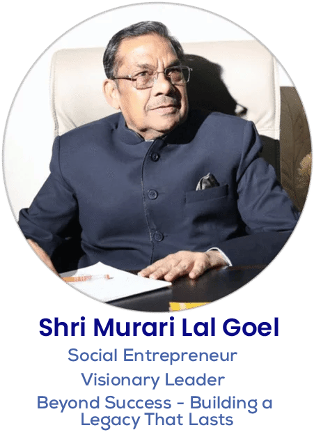 At the heart of our mission lies the extraordinary legacy of Shri Murari Lal Goel-a visionary whose exceptional leadership, unwavering dedication, and forward-thinking ideals have transformed both education and enterprise. As the co-founder of the esteemed Goel Group of Institutions, he has redefined academic excellence by fostering transformative learning and inspiring generations of curious minds to achieve their fullest potential. Beyond his contributions to education, Shri Murari Lal Goel is a dynamic entrepreneur whose ventures in real estate, logistics, and warehousing have set new benchmarks in innovation, resilience, and growth.